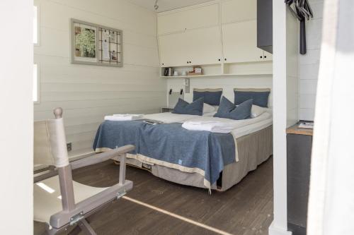 De ljusa, moderna rummen på Salt & Sill ligger i 6 byggnader på flytande plattformar. Varje rum har TV och egen uteplats.