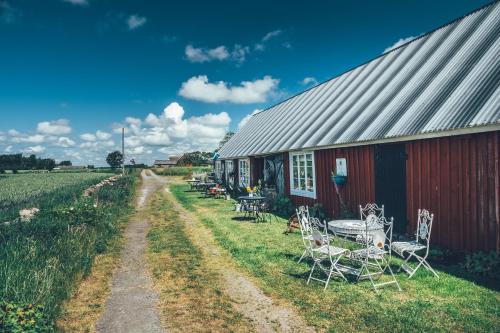 Alla rum på Farmors Lada har inredning i trä samt skrivbord, sittgrupp och eget badrum med dusch. Varje rum har en egen uteplats.