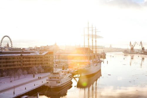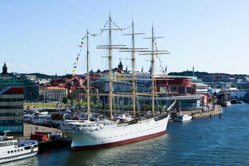 This charming hotel is on a restored 1907 windjammer (large sailing ship) on Gothenburg’s Gullbergskajen Quay. It features great views of the waterfront, free Wi-Fi access in public areas and spacious maritime-themed rooms.
