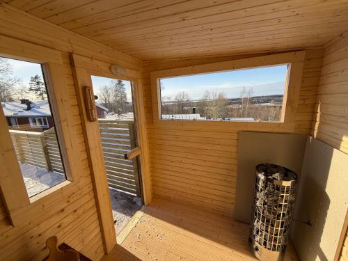 Cabin On The Hill is a recently renovated holiday home in Undenäs, where guests can make the most of its garden and tennis court. The air-conditioned accommodation is 43 km from Mariestad Train Station. There is an outdoor fireplace and guests can make use of free WiFi and free private parking. The holiday home with a patio and mountain views features 2 bedrooms, a living room, a flat-screen TV, an equipped kitchen with a dishwasher and an oven, and 1 bathroom with a shower. Guests can enjoy a meal on an outdoor dining area while overlooking the lake views. For added privacy, the accommodation features a private entrance. A minimarket is available at the holiday home. For guests with children, the holiday home provides an indoor play area and a children's playground. Guests at Cabin On The Hill can enjoy darts on-site, or go walking tours or bike tours in the surroundings. The nearest airport is Orebro Airport, 97 km from the accommodation.