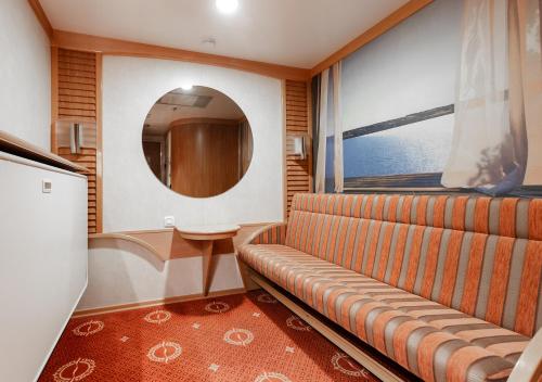 Compact and comfortable cabin without a window for 1–2 people. There is a TV, internal phone, hair dryer, air conditioning, toilet and shower (towels and shower gel/shampoo included).
